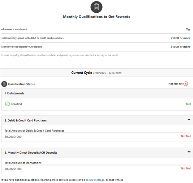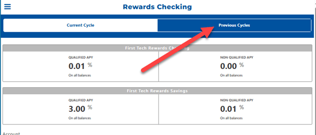 On the top of the Rewards Tracker screen, you can tap Previous Cycles to select a previous month to see if qualifications for that month were met.